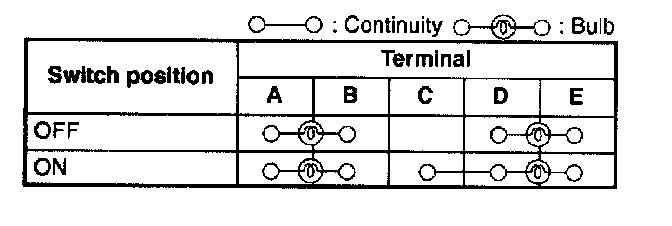 3. Check for continuity between the cruise control main switch terminals by using an ohmmeter.