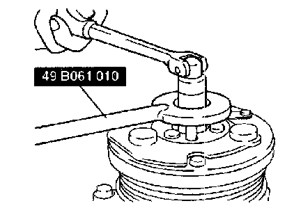 2. Set a 25 mm (1.0 in) socket and puller (commercially available) on the A/C compressor.