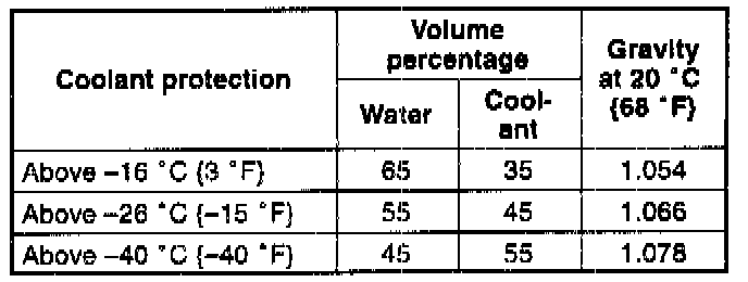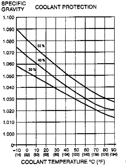 1. Measure the coolant temperature and specific gravity with a thermometer and a hydrometer.