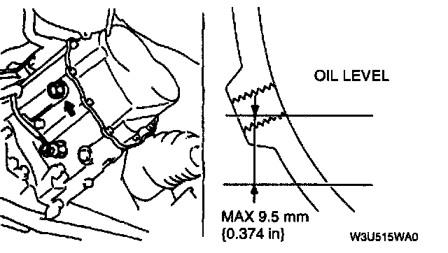 4. Remove the oil level plug and the washer. Add the specified amount and type of oil through the oil level plug hole until the level reaches the bottom of the oil level plug hole.