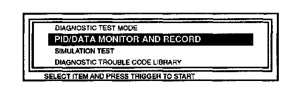 3. Select the "PID/DATA MONITOR AND RECORD" function and press TRIGGER.