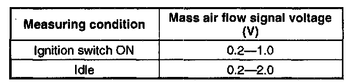 6. It there is correct the terminal voltage and harness continuity, replace the mass airflow sensor.