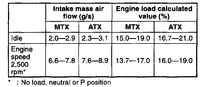 NOTE: The scan tool shows the mass airflow rate and load value.