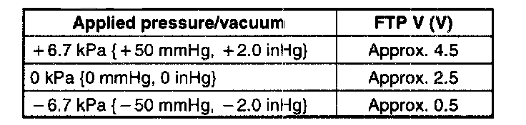 FUEL TANK PRESSURE SENSOR INSPECTIONNOTE: The following vacuum and pressure values are indicated by relative pressure from atmospheric pressure.