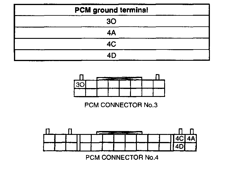 3. Inspect for continuity between the PCM ground terminals and body ground by using an ohmmeter.