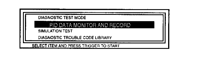 1. Connect the SSTs (NGS tester) to the data link connector-2 and select the PID/DATA MONITOR AND RECORD function.