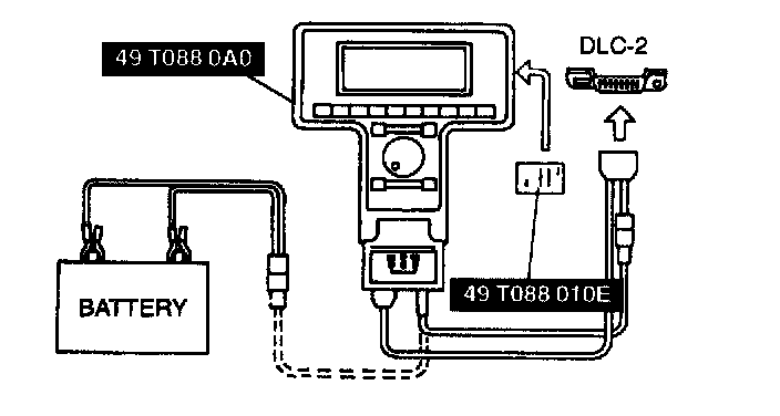 POWERTRAIN CONTROL MODULE INSPECTION USING SSTs (NGS TESTER)1. In the passenger compartment, connect the SST (NGS tester) to the data link connector-2 as shown in the figure.