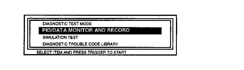 2. Referring to the NGS tester operational manual, select the "PID/DATA MONITOR AND RECORD" and press TRIGGER.