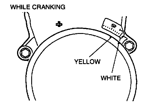 3. Verify that the timing mark (yellow) on the crankshaft pulley and the mark on the timing belt cover are aligned.