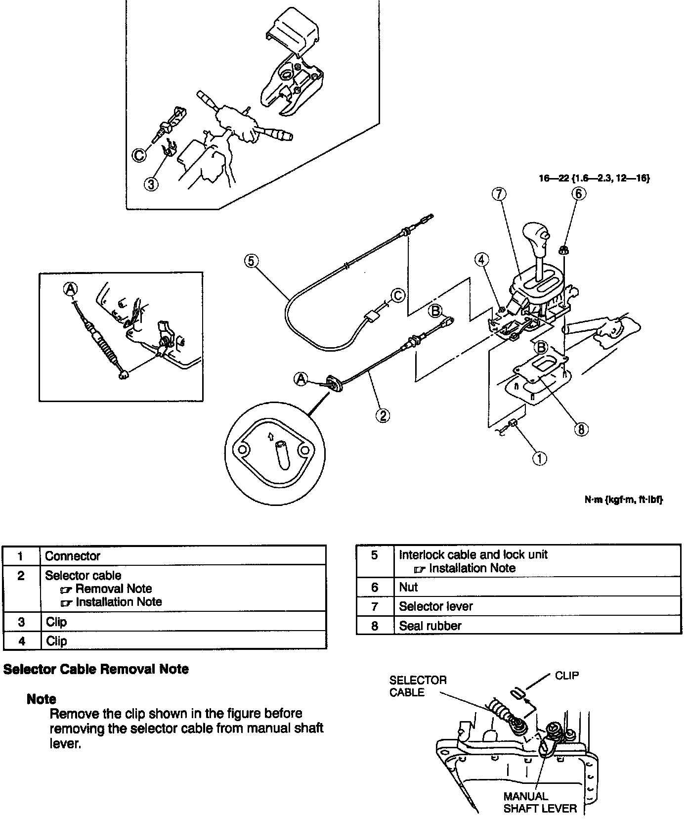 SELECTOR LEVER REMOVAL/INSTALLATION