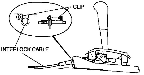 3. Install the interlock cable and lock unit. (Refer to SELECTOR LEVER REMOVAL/INSTALLATION, Interlock Cable and Lock Unit Installation Note.)