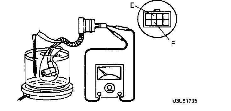 3. Measure resistance between the terminals E and F of the transaxle fluid temperature sensor.