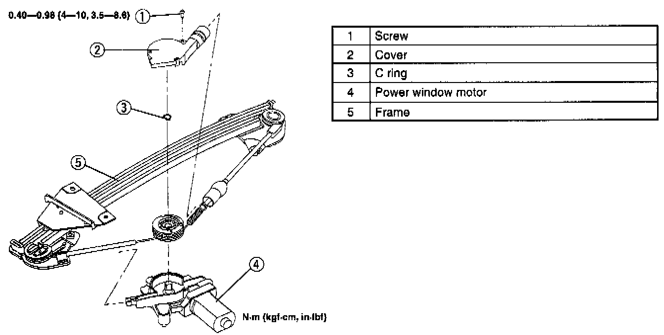 Note: A dummy cover is attached to the frame and the power window motor to prevent the cable from coming off during shipping.