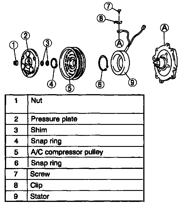 MAGNETIC CLUTCH DISASSEMBLY/ASSEMBLY1. Disassemble in the order indicated in the table.