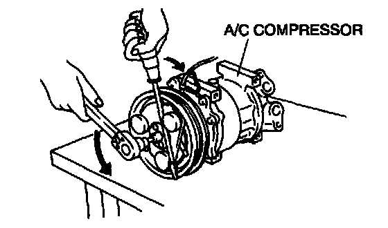 When removing or installing the nut, hold the pressure plate in place as shown in the figure.