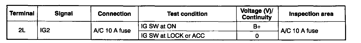 2. Measure the voltage at each climate control unit terminal and refer to the terminal voltage list.