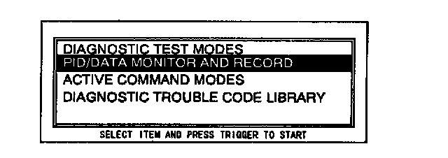 5. Connect the Special Service Tools (SSTs) (NGS tester) to the data link connector and select the "PID/DATA MONITOR AND RECORD" function and press TRIGGER.