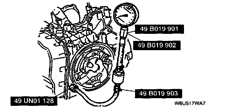 4. Remove the Line pressure inspection port plug then connect the SSTs.