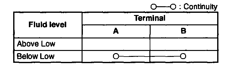 3. Inspect for continuity between the washer fluid-level sensor terminals by using an ohmmeter.
