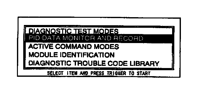 PID/DATA MONITOR AND RECORD. Press the trigger key to enter this selection.