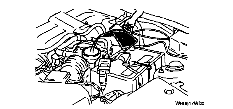 5. Add the specified type of ATF through the oil filler tube, until ATF level reaches lower notch of dipstick.