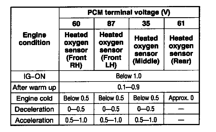 5. Measure the voltage at PCM terminal 35, 60, 61 and 87.