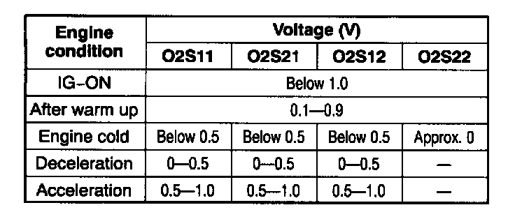 3. Select "O2S11", "O2S21", "O2S12" and "O2S13" on the NGS tester display and press START. The NGS tester measures and shows the voltage.