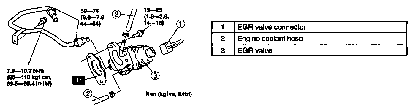 WARNING: Do not remove the EGR valve with the engine hot. Engine coolant in the EGR valve may badly burn or injure. Always remove and install the EGR valve when the engine is cold.1. Remove in the order indicated in the table.