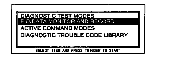 5. Connect the Special Service Tools (SSTs) (NGS tester) to the data link connector and select the "PID/DATA MONITOR AND RECORD" function and press TRIGGER.