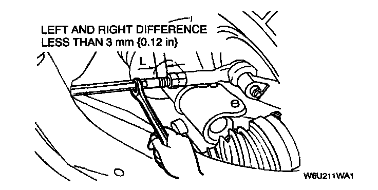 NOTE: Turning both tie rods one complete turn changes toe-in by about 6 mm {0.24 inch} (0°36').