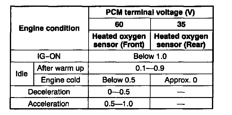 5. Measure the voltage at PCM terminal 35 and 60.