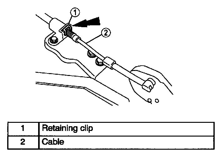 1. Remove retaining clip from cable at accelerator cable bracket.