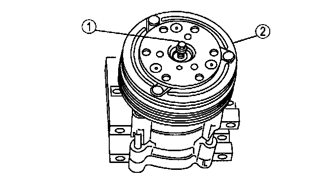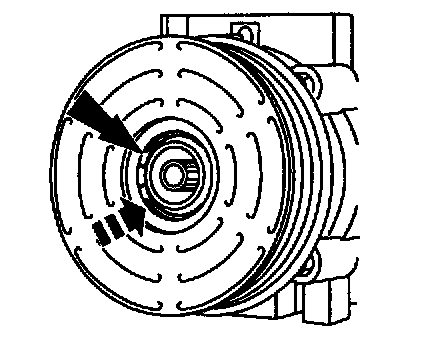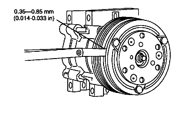 8. Measure and adjust the clutch air gap by removing or adding A/C clutch hub spacers.