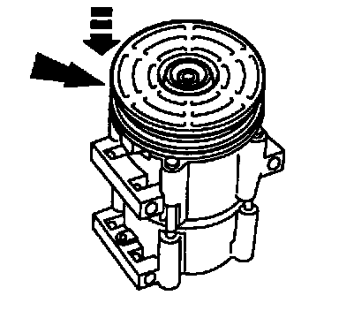 NOTE: The bearing is a tight fit on the A/C compressor head; it must be properly aligned to push on.