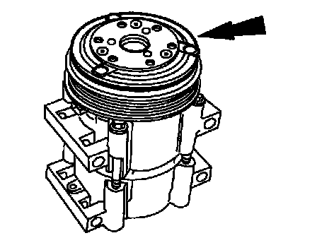 1. Place the A/C clutch field coil on the A/C compressor with the A/C clutch field coil electrical connector properly positioned.