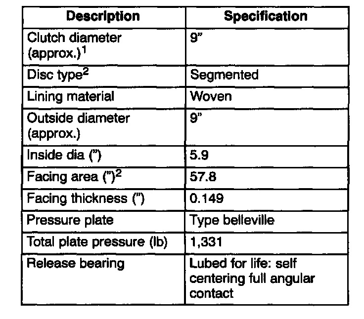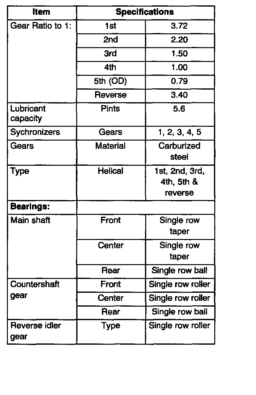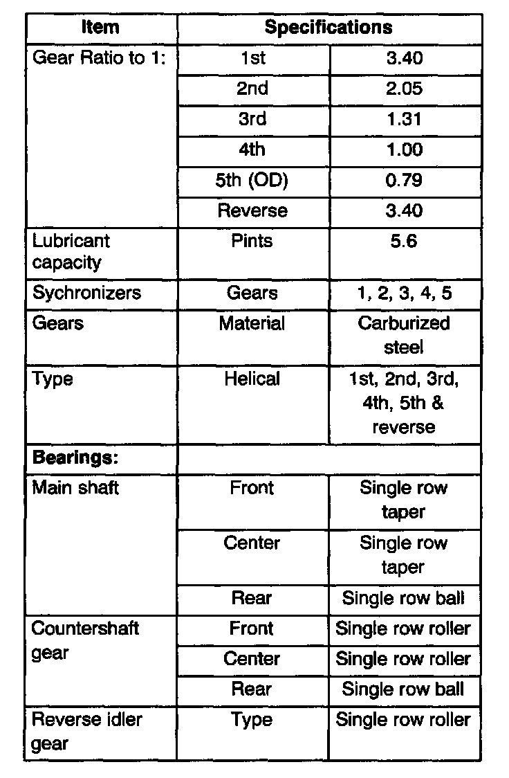 Manual Transmission Specifications - 5 Speed Overdrive (2.5L & 3.0L)