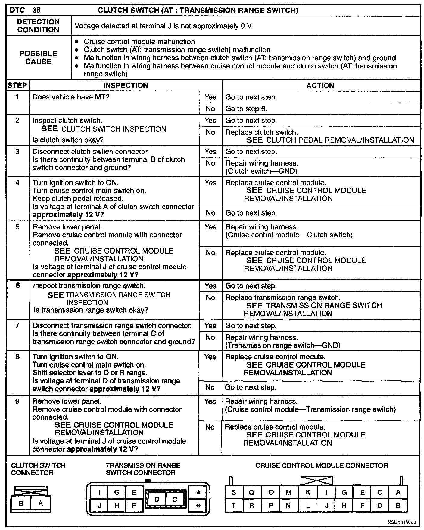 DTC 35 Clutch Switch (AT: Transmission Range Switch):