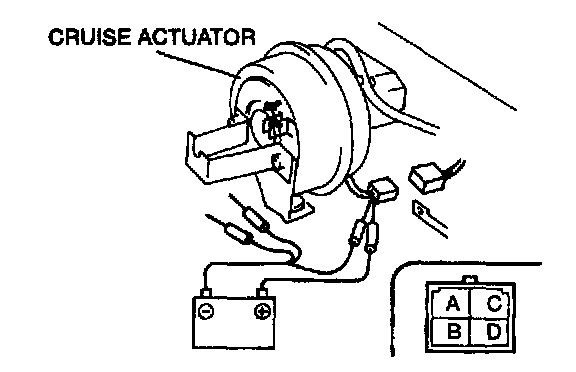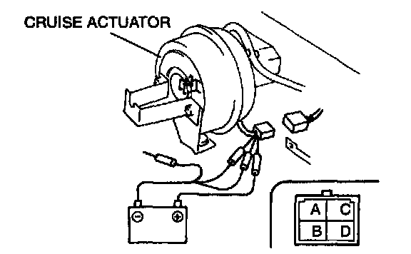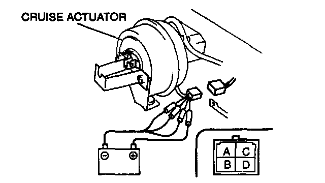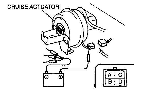 4. Confirm that the diaphragm is drawn into the cruise actuator when battery positive voltage is connected to terminal C and terminals A, B and D are connected to the ground.