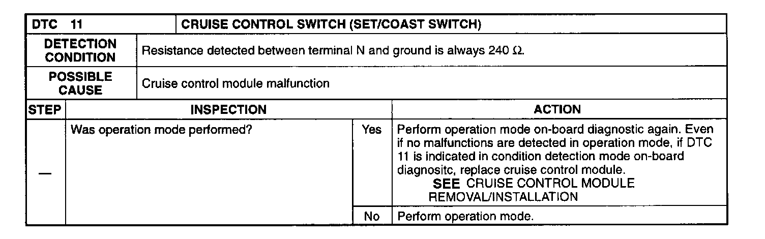 DTC 11 Cruise Control Switch (Set/Coast Switch):