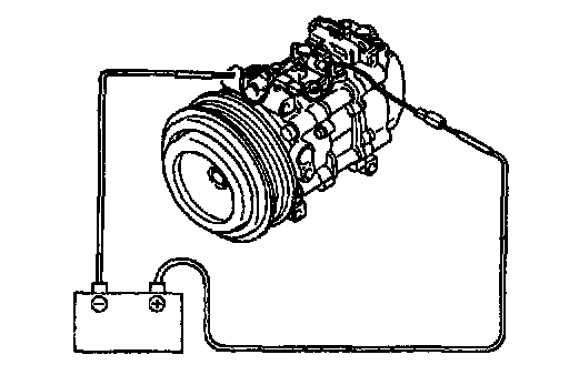 2. Connect battery positive voltage to terminal A of the magnetic clutch and ground to A/C compressor body.
