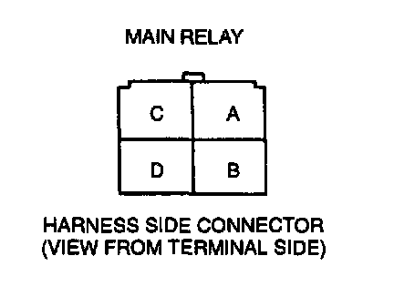 - Mass air flow sensor connector terminal C and main relay terminal D through common connector to ground.