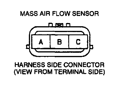 - Mass air flow sensor connector terminal B and PCM connector terminal 2L to ground.