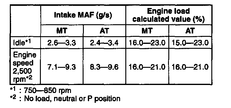 2. If any of the above are found, replace the mass air flow sensor. If the above are found okay, but PID value is out of specification, inspect as follows: