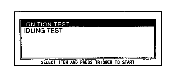 3. Move the cursor to IGNITION ON TEST. Press the trigger key to enter this selection.