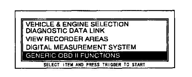 2. Move the cursor to GENERIC OBD II FUNCTIONS. Press the trigger key to enter this selection.