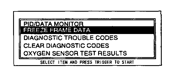 4. Move the cursor to FREEZE FRAME PID DATA.