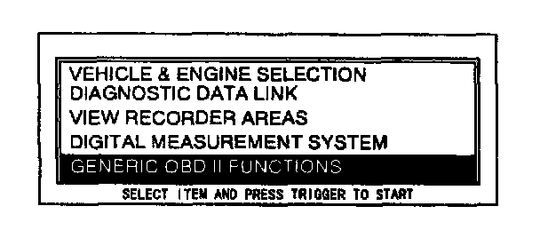 2. Move the cursor to GENERIC OBD II FUNCTIONS. Press the trigger key to enter this function.