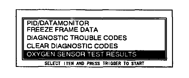 4. Move the cursor to OXYGEN SENSOR TEST RESULTS. Press the trigger key to enter this selection.