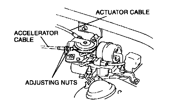 2. Adjust the accelerator cable adjusting nut to allow no play to the actuator link.