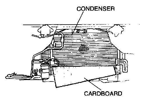7. Insert a protector (such as cardboard) between the condenser and the radiator, and lean the radiator toward the engine.